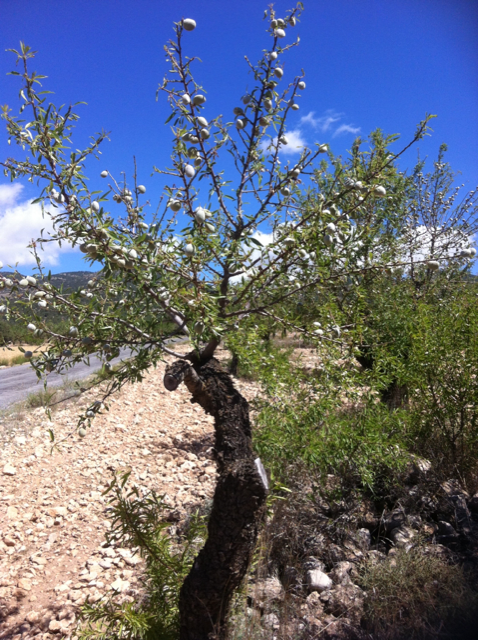 De entre un inmenso y seco pedrerío apareció un bancal de almendros viejos y retorcíos cargaos de almendras ya gordas pá cosechar.