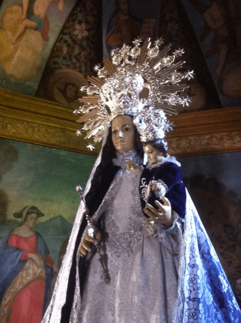 Nos cuenta que en tiempos de la guerra escondieron la Virgen y toas sus joyas, porque en el pueblo decian que los rojos de la capital le iban a pegar fuego…