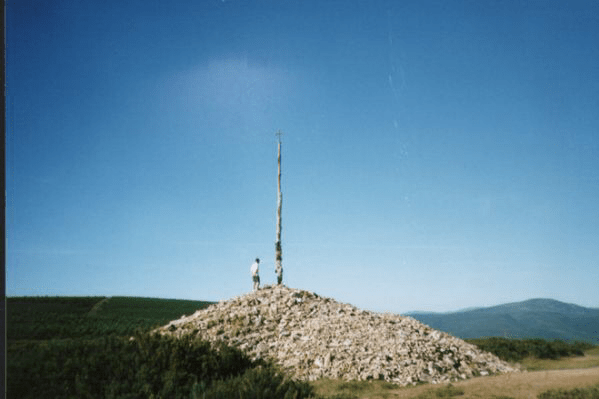 Por azar, como casi siempre me fué ocurriendo, por los años 70 pasé 15 meses en el paraje de La Cruz del Fierro, a metros de la Cruz, junto al Camino de Santiago; en esa época apenas habia unas piedritas al pie de la Cruz que algunos peregrinos traían de sus tierras y las dejaban de presente.
