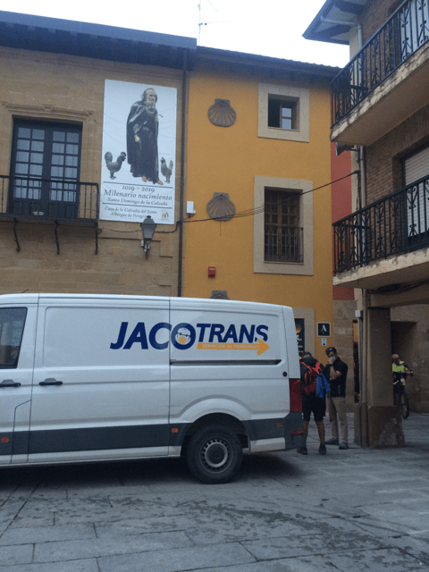 A/ Los Jacotramsp O Peregrinos VIPS Son esos que cada mañana salen apenas con una diminuta mochilita, apenas pa una botellita isotonica y un par de chocolatinas organicas. El resto del ato vá en la Jacotramps. que significa; JACO, de Jacobeo TRAMSP, de tramsporte Esto es tramspote de mochilas de los peregrinos.