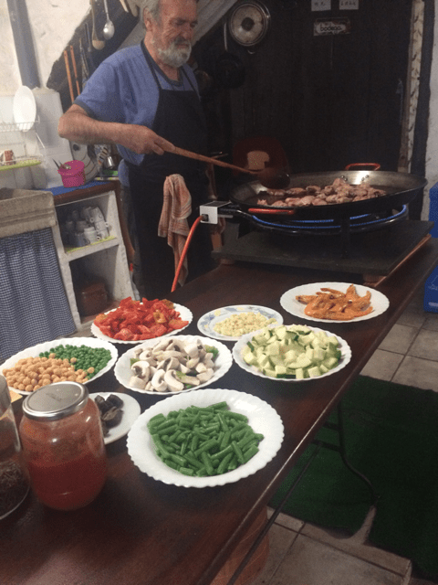 A las 18h el Jordi comienza su preparacion de «La Paella», se le ve disfrutar cortando todo trocito a trocito. Los guiris van acudiendo a ver si le copian la receta. La leva se compone de una pareja de juvilados de whasinton, una chica cuarentona de california, una pareja prejuvilados centroeuropeos, el aleman, ella hungara y una Alicantina de Caravaca, alrededor de los 50, mas catalanista que los propios catalanes. Por las cuentas el 33% somos de la bella tierra murciana y de esos el 22% desarraigados.